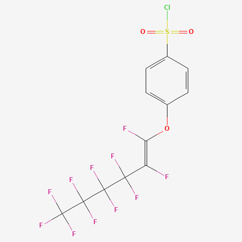 - Synonyms:EINECS 261-788-1;p-((Undecafluorohexenyl)oxy)benzenesulphonyl chloride;59493-82-2;958825-16-6;P-[(undecafluorohexenyl)oxy]benzenesulphonyl chloride;C12H4ClF11O3S;DTXSID20893456;C12-H4-Cl-F11-O3-S;p-[(Undecafluorohexenyl)oxy]benzenesulfonyl chloride;4-{[(1E)-Perfluorohex-1-en-1-yl]oxy}benzene-1-sulfonyl chloride;4-{[(1E)-1,2,3,3,4,4,5,5,6,6,6-Undecafluorohex-1-en-1-yl]oxy}benzene-1-sulfonyl chloride