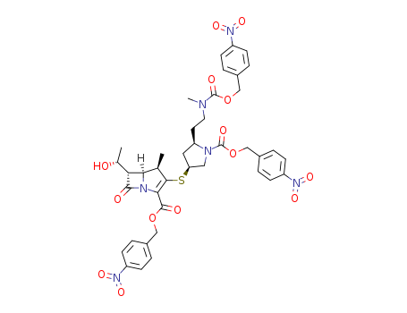 - Synonyms:p-nitrobenzyl (1R,5S,6S)-6-[(R)-1-hydroxyethyl]-1-methyl-2-[(2R,4S)-2-[2-(N-methyl-N-p-nitrobenzyloxycarbonylamino)ethyl]-N-p-nitrobenzyloxycarbonylpyrrolidin-4-ylthio]-1-carbapen-2-em-3-carboxylate