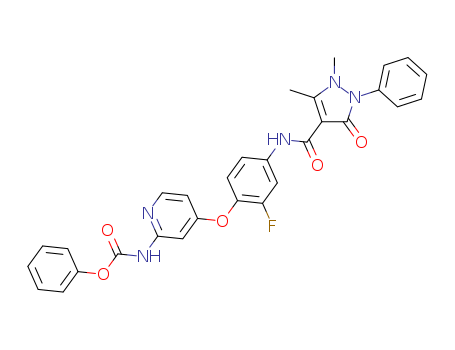 - Synonyms:phenyl (4-(4-(1,5-dimethyl-3-oxo-2-phenyl-2,3-dihydro-1H-pyrazole-4-carboxamido)-2-fluorophenoxy)pyridin-2-yl)carbamate
