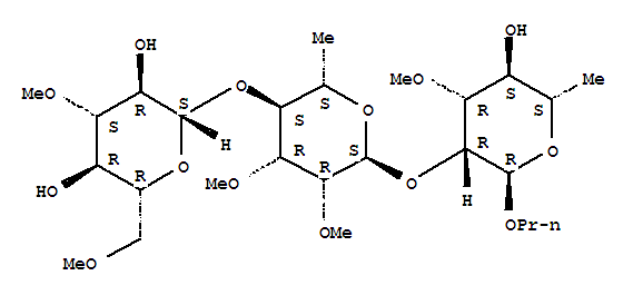 - Synonyms:propyl O-(3,6-di-O-methyl-beta-glucopyranosyl)-(1-4)-O-(2,3-di-O-methyl-alpha-rhamnopyranosyl)-(1-2)-3-O-methyl-alpha-rhamnopyranoside