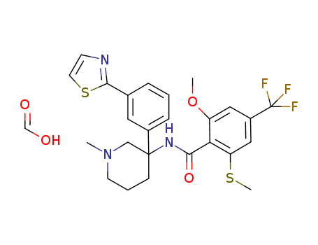 rac-2-methoxy-6-methylsulfanyl-N-[1-methyl-3-(3-thiazol-2-yl-phenyl)-piperidin-3-yl]-4-trifluoromethyl-benzamide formic acid(1236304-21-4)