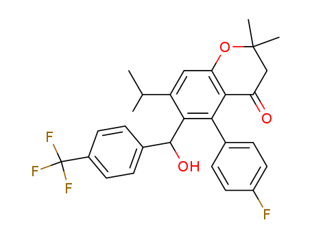 - Synonyms:rac-5-(4-fluorophenyl)-6-{hydroxy[4-(trifluoromethyl)phenyl]methyl}-7-isopropyl-2,2-dimethyl-2,3-dihydro-4H-chromen-4-one