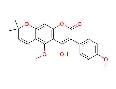 - Synonyms:2H,8H-Benzo[1,2-b:5,4-b']dipyran-2-one,4-hydroxy-5-methoxy-3-(p-methoxyphenyl)-8,8-dimethyl- (8CI);2H-1-Benzopyran-6-acrylic acid, b,7-dihydroxy-5-methoxy-a-(p-methoxyphenyl)-2,2-dimethyl-, d-lactone (7CI); Robustic acid