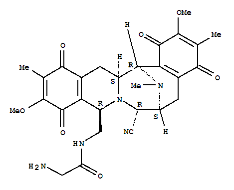 - Synonyms:Acetamide,2-amino-N-[(7-cyano-1,5,6,7,9,10,13,14,14a,15-decahydro-2,11-dimethoxy-3,12,16-trimethyl-1,4,10,13-tetraoxo-6,15-imino-4H-isoquino[3,2-b][3]benzazocin-9-yl)methyl]-,[6S-(6a,7a,9b,14aa,15a)]-; 6,15-Imino-4H-isoquino[3,2-b][3]benzazocine,acetamide deriv.; Saframycin Yd 2