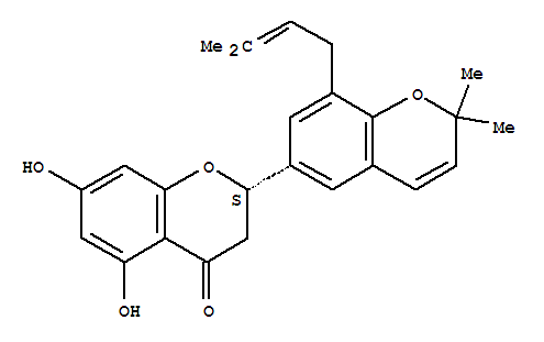 - Synonyms:[2,6'-Bi-2H-1-benzopyran]-4(3H)-one,5,7-dihydroxy-2',2'-dimethyl-8'-(3-methyl-2-butenyl)-, (2S)- (9CI);[2,6'-Bi-2H-1-benzopyran]-4(3H)-one,5,7-dihydroxy-2',2'-dimethyl-8'-(3-methyl-2-butenyl)-, (S)-; (-)-Sigmoidin E;Sigmoidin E