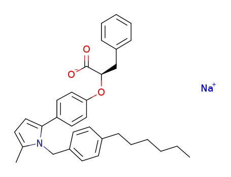 - Synonyms:sodium (2R)-2-{4-[1-(4-hexylphenylmethyl)-5-methyl-1H-pyrrol-2-yl]phenoxy}-3-phenylpropanoate