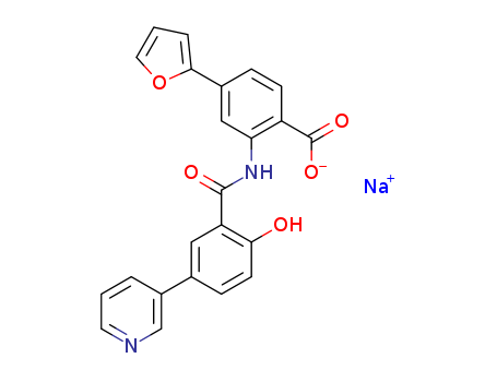 - Synonyms:sodium 4-(furan-2-yl)-2-(2-hydroxy-5-(pyridin-3-yl)benzamido)benzoate