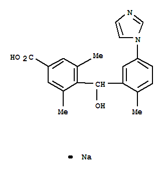 - Synonyms:Benzoicacid, 4-[hydroxy[5-(1H-imidazol-1-yl)-2-methylphenyl]methyl]-3,5-dimethyl-,monosodium salt (9CI); Y 20811