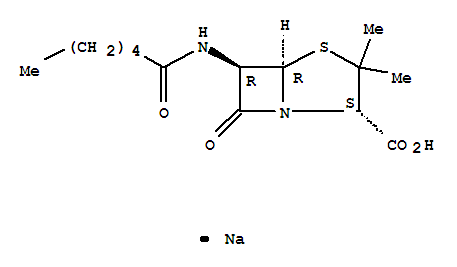 - Synonyms:4-Thia-1-azabicyclo[3.2.0]heptane-2-carboxylicacid, 3,3-dimethyl-7-oxo-6-[(1-oxohexyl)amino]-, monosodium salt, [2S-(2a,5a,6b)]-; 4-Thia-1-azabicyclo[3.2.0]heptane-2-carboxylic acid,6-hexanamido-3,3-dimethyl-7-oxo-, monosodium salt (8CI); Amylpenicillin sodium;Flavacidin; Flavicin; Penicillin dihydro F sodium; Pentylpenicillin sodiumsalt; Sodium n-amylpenicillinate