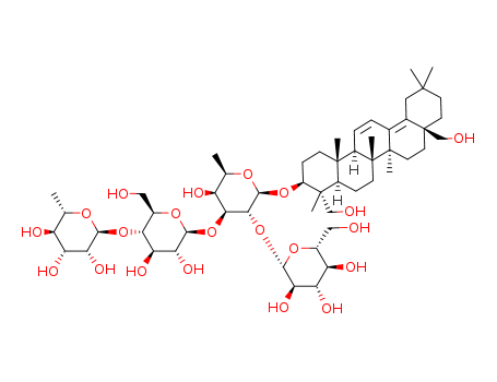 - Synonyms:3-O-[a-L-Rhamnopyranosyl-(1®4)-b-D-glucopyranosyl-(1®3)]-[b-D-glucopyranosyl-(1®2)]-b-D-fucopyranosyloleana-11,13(18)-diene-3b,23,28-triol; Ilwensisaponin B;Songarosaponin A