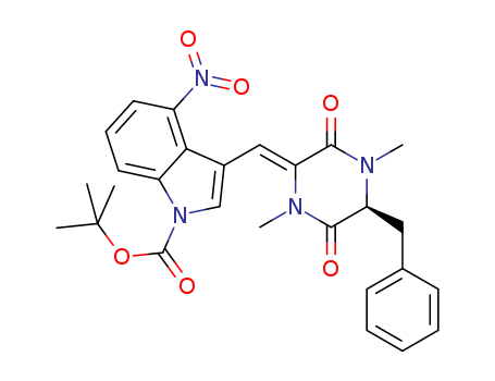 - Synonyms:t-butyl-3-[(3S)-(Z)-(5-benzyl-1,4-dimethyl-3,6-dioxopiperazin-2-ylidene)methyl]-4-nitroindole-1-carboxylate