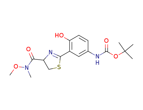 t-butyl {4-hydroxy-3-[4'-(N-methoxy-N-methyl-carboxamido)-4',5'-dihydrothiazol-2'-yl]-phenyl}carbamate(554409-17-5)