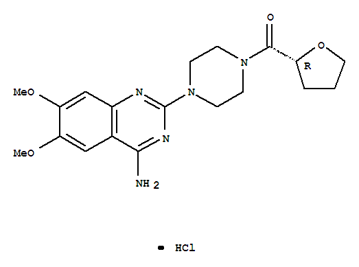 - Synonyms:Piperazine,1-(4-amino-6,7-dimethoxy-2-quinazolinyl)-4-[(tetrahydro-2-furanyl)carbonyl]-,monohydrochloride, (R)-; Piperazine,1-(4-amino-6,7-dimethoxy-2-quinazolinyl)-4-[[(2R)-tetrahydro-2-furanyl]carbonyl]-,monohydrochloride (9CI)