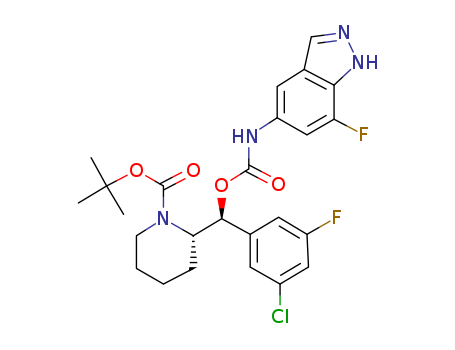 tert-Butyl (S)-2-[(S)-(3-chloro-5-fluorophenyl)(7-fluoro-1H-indazol-5-ylcarbamoyloxy)-methyl]piperidine-1-carboxylate(1105175-12-9)