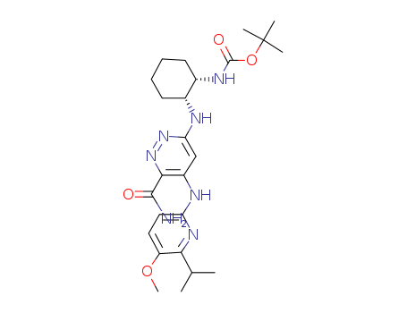 - Synonyms:tert-butyl (1S,2R)-2-(6-carbamoyl-5-(6-isopropyl-5-methoxypyridin-2-ylamino)pyridazin-3-ylamino)cyclohexylcarbamate