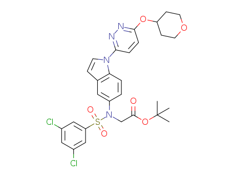 tert-butyl ((3,5-dichloro-phenylsulphonyl)-{1-[6-(tetrahydro-pyran-4-yloxy)-pyridazin-3-yl]-1H-indol-5-yl}-amino)-acetate(1049023-64-4)