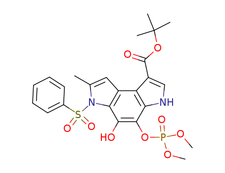 - Synonyms:tert-butyl 3,6-dihydro-4-((dimethoxyphosphinyl)oxy)-5-hydroxy-7-methyl-6-(phenylsulfonyl)benzo<1,2-b:4,3-b'>dipyrrole-1-carboxylate