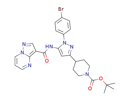- Synonyms:tert-butyl 4-(1-(4-bromophenyl)-5-(pyrazolo[1,5-a]pyrimidine-3-carboxamido)-1H-pyrazol-3-yl)piperidine-1-carboxylate
