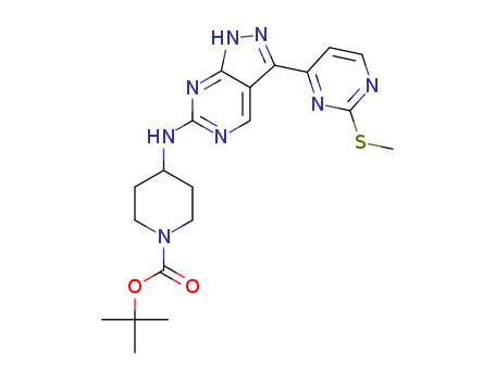- Synonyms:tert-butyl 4-(3-(2-(methylthio)pyrimidin-4-yl)-1H-pyrazolo[3,4-d]pyrimidin-6-ylamino)piperidine-1-carboxylate