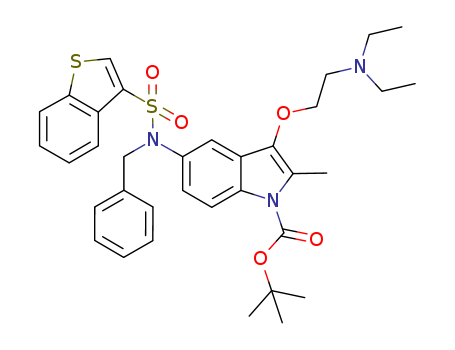 - Synonyms:tert-butyl 5-{[(1-benzothiophen-3-yl)sulfonyl](benzyl)amino}-3-[2-(diethylamino)ethoxy]-2-methyl-1H-indole-1-carboxylate
