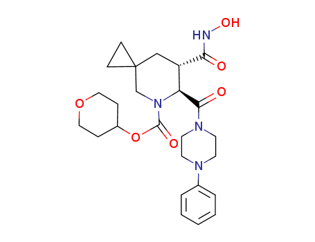 - Synonyms:tetrahydro-2H-pyran-4-yl (6S,7S)-7-((hydroxyamino)carbonyl)-6-((4-phenylpiperazin-1-yl)carbonyl)-5-azaspiro(2,5)octane-5-carboxylate