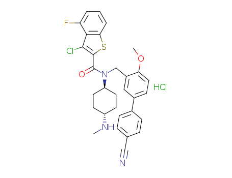 - Name: trans-3-chloro-4-fluoro-benzo[b]thiophene-2-carboxylic acid (4'-cyano-4-methoxy-biphenyl-3-ylmethyl)-(4-methylamino-cyclohexyl)-amide hydrochloride