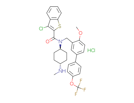 trans-3-chloro-benzo[b]thiophene-2-carboxylic acid (4-methoxy-4'-trifluoromethoxy-biphenyl-3-ylmethyl)-(4-methylamino-cyclohexyl)-amide hydrochloride(945997-67-1)