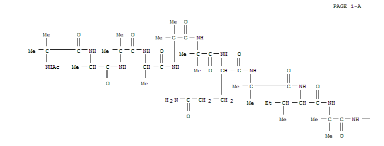 - Synonyms:AlamethicinI, 2-L-alanine-6-(2-methylalanine)-9-L-isoleucine-18-L-glutamine-;L-Glutamamide,N-acetyl-2-methylalanyl-L-alanyl-2-methylalanyl-L-alanyl-2-methylalanyl-2-methylalanyl-L-glutaminyl-2-methylalanyl-L-isoleucyl-2-methylalanylglycyl-L-leucyl-2-methylalanyl-L-prolyl-L-valyl-2-methylalanyl-2-methylalanyl-L-glutaminyl-N1-[1-(hydroxymethyl)-2-phenylethyl]-,(S)-