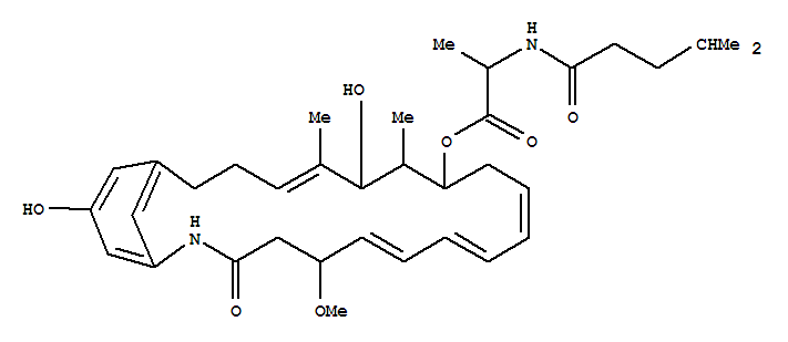 - Synonyms:D-Alanine,N-(4-methyl-1-oxopentyl)-, 11-ester with20,23-didehydro-20,23-dideoxo-20-hydroxyansatrienol A;2-Azabicyclo[18.3.1]tetracosane, D-alanine deriv.; Trienomycin E